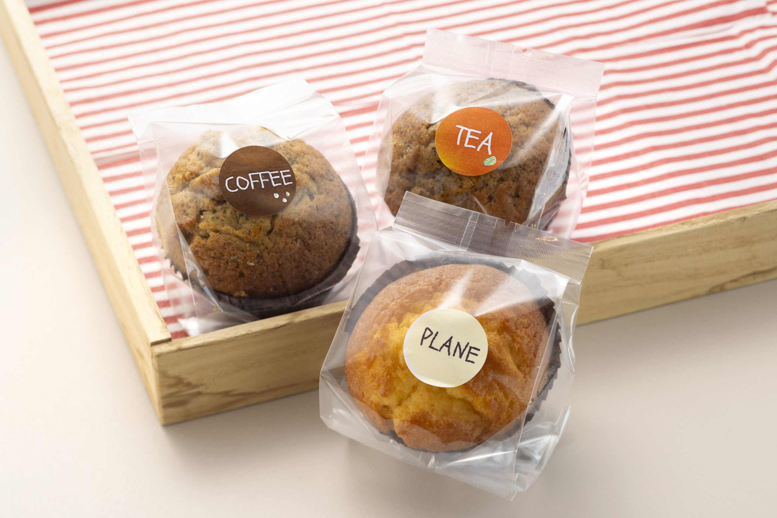 プレーン・チョコチップ・オレンジポピーシードの3種類を用意しています。 -